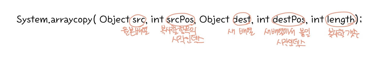 int[] oldIntArray = {1,2,3}; int[] newIntArray = new int[5]; for(int i=0; i<oldIntArray.length;i++) { newIntArray[i] = oldIntArray[i]; } for(int i=0; i<newIntArray.length; i++) { System.out.print(newIntArray[i] + " "); } } 실행결과 : 1 2 3 0 0 //정수는 0으로 초기화되기때문에 복사되지 않은 부분은 0으로 출력됨. |