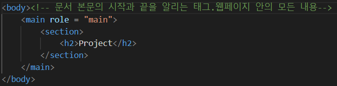 <section> 태그 : 웹 사이트 영역을 설정할 때 사용. (ex)책에서의 각 챕터의 내용을 담은 영역). <section> 태그 안에는 반드시 <h2>~<h6>태그 중 하나는 있어야 한다.