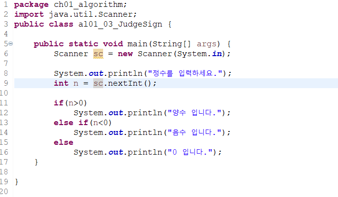 if(n>0) System.out.println("양수 입니다."); else if(n<0) System.out.println("음수 입니다."); else System.out.println("0 입니다.");