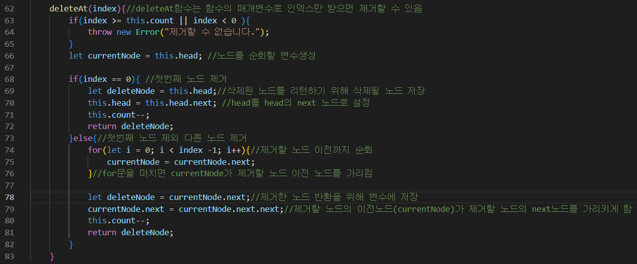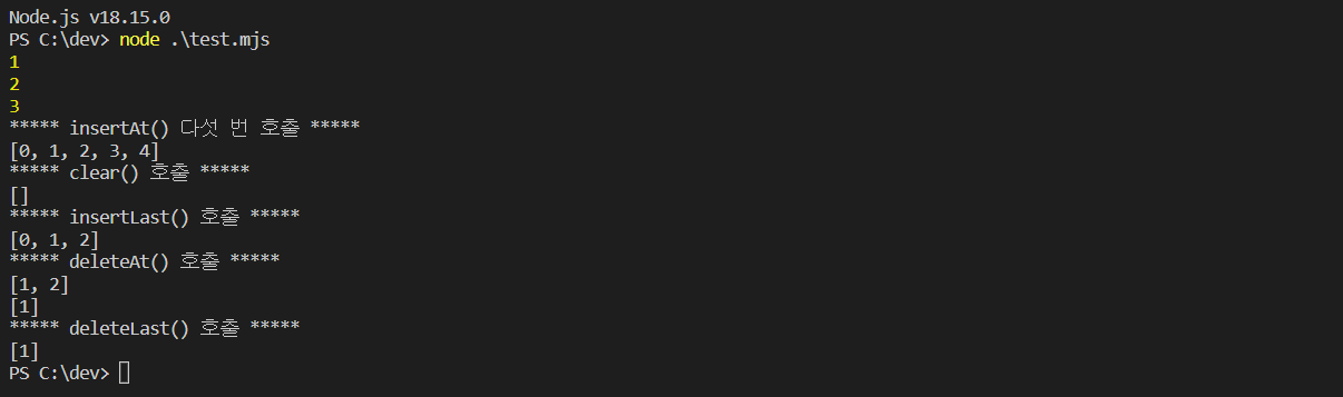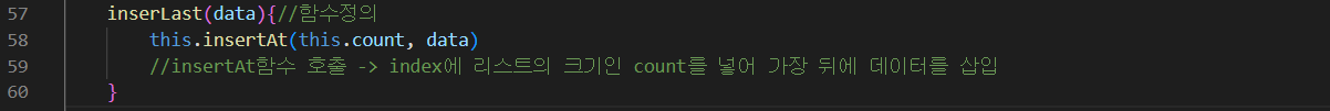 4. 원하는 인덱스에 데이터를 삽입하는 insertAt()함수 생성 -> index=삽입할위치, data=삽입할 데이터