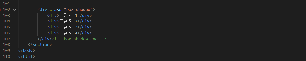 -box-shadow : x축 y축 blur(흐릿함정도) spread(그림자의크기) 색상;