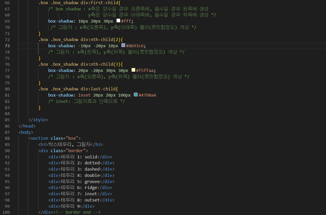 HTML, CSS 기초 (작업물) : 07_테두리, 그림자(border, box-shadow)